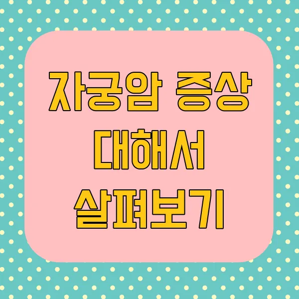 안녕하세요! 오늘은 자궁암 증상에 대해 이야기해보려고 해요. 자궁암은 증상이 초기 단계에서 잘 드러나지 않기 때문에 주의가 필요하답니다. 초기 징후를 알아두면 조기에 발견할 수 있는 가능성이 더 높아지겠죠? 또, 진단 방법이나 치료 옵션에 대해서도 함께 살펴볼 예정이에요. 이와 관련된 다양한 건강 관리 방법도 놓치지 말아야겠죠? 진지하게 생각해보면 우리 몸에 대해서 더 알고, 주의 깊게 살펴보는 게 중요하겠어요. 함께 알아보면서 건강 챙겨보는 시간 가져보아요!